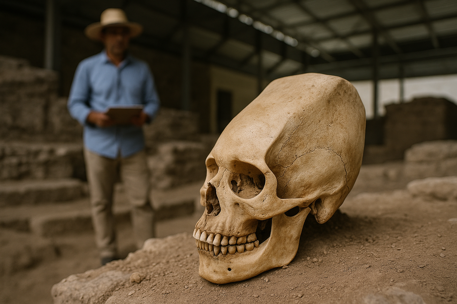 🧠 Hintergrund der Praxis Intentional deformierte Schädel sind aus Mesoamerika seit Langem bekannt; die Formung erfolgte im frühen Kindesalter durch Druck mittels Brettern, Bandagen oder speziellen Kopflagerungen. Ziel war nicht bloß eine ästhetische Veränderung, sondern häufig die sichtbare Markierung von Gruppenzugehörigkeit, Status oder kultureller Identität. In Nordost-Mexiko galt die konische Form als verbreitet, während flach- bzw. quaderförmige Varianten bisher kaum belegt waren. Die nun dokumentierte Ausprägung wird fachlich als tabular erect mit ausgeprägt flachem Oberflächenplan beschrieben; in mexikanischen Mitteilungen ist von „tabular superior“ bzw. „paralelepípeda“ die Rede – eine in dieser Region bislang nicht nachgewiesene, kubisch wirkende Form.