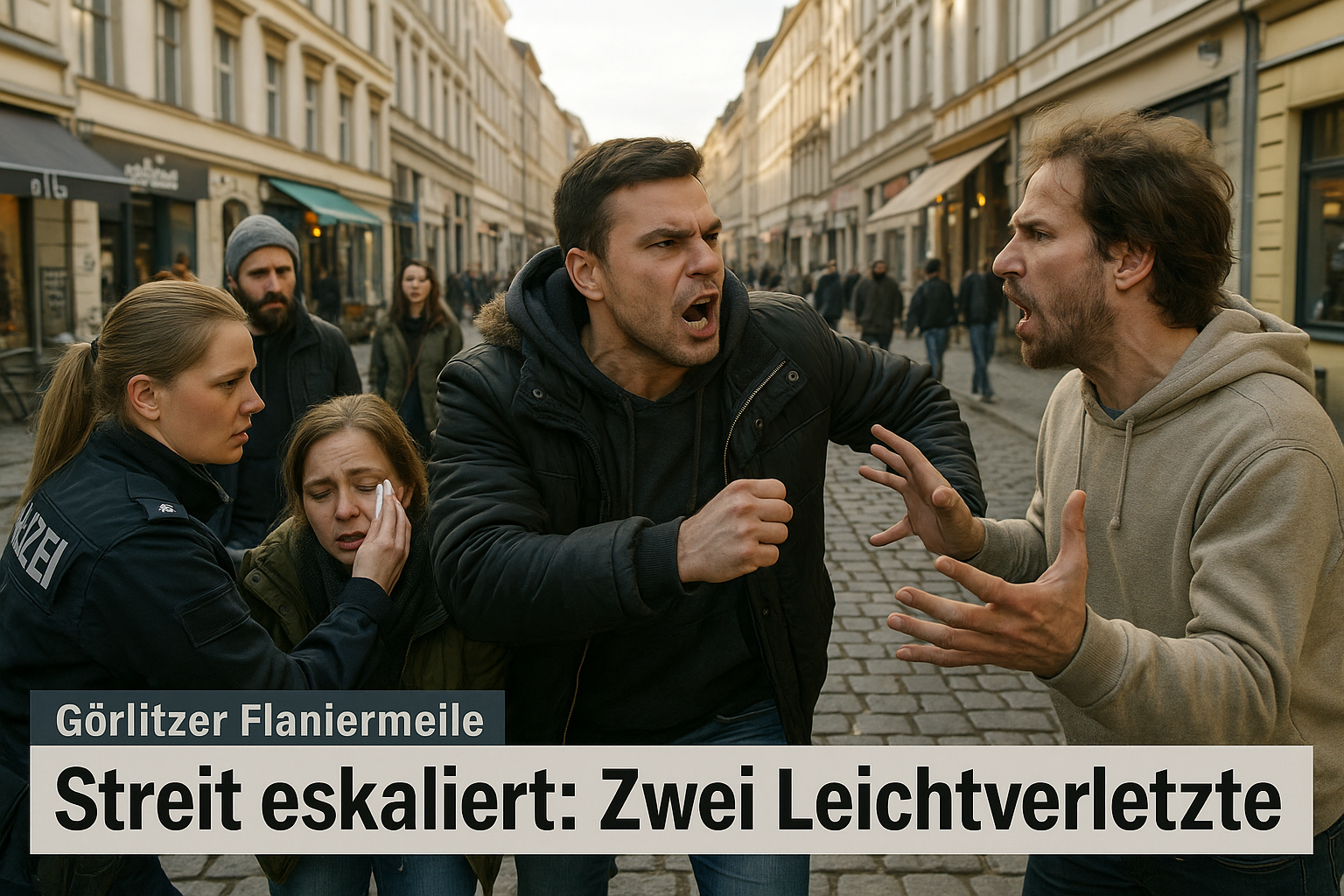 🗞️ Überblick Auf der Berliner Straße in Görlitz ist am Freitagnachmittag, 24. April 2026, ein zunächst verbaler Konflikt in eine handfeste Auseinandersetzung umgeschlagen. Zwei Beteiligte wurden leicht verletzt. Die Polizei nahm vor Ort die Ermittlungen auf; die Personalien aller Beteiligten wurden festgestellt. Die Ermittlungen dauern an.